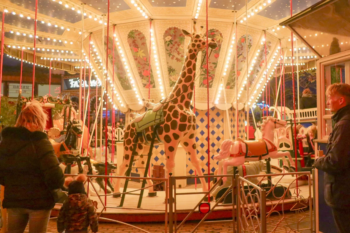 メリーゴーランドでキリンの乗り物は初めて見ました。