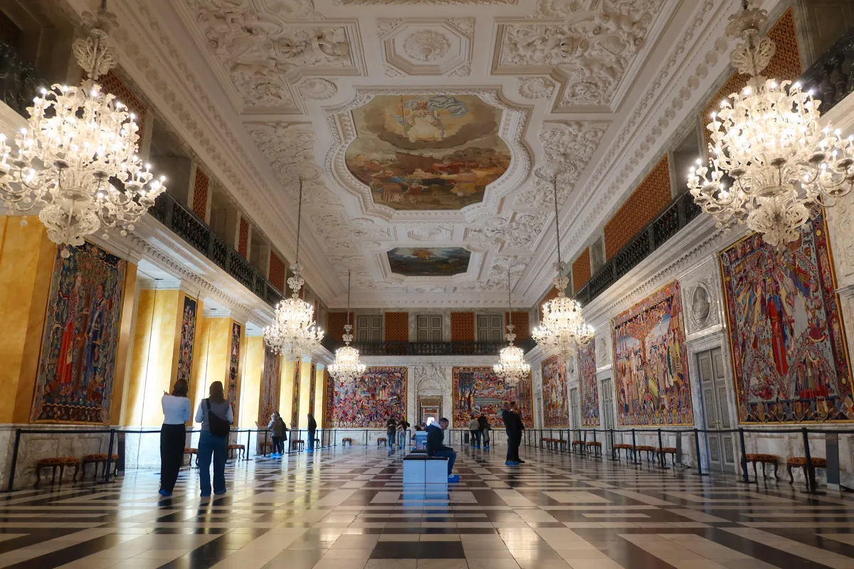デンマークを囲む三つの海を象徴する3頭のライオン像に守られた玉座や、地下の宝物庫に展示されている王冠や宝石が主な見どころ。