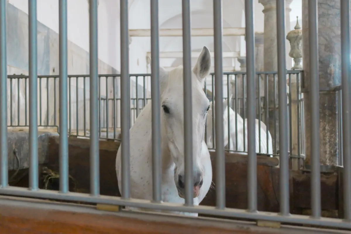 馬舎には本物の馬がいました。綺麗な白馬です…