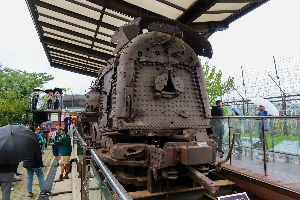 園内には、停戦時に捕虜が韓国へ帰還する際に渡った「自由の橋」や、戦争中に爆破されたまま残る鉄道橋があります。