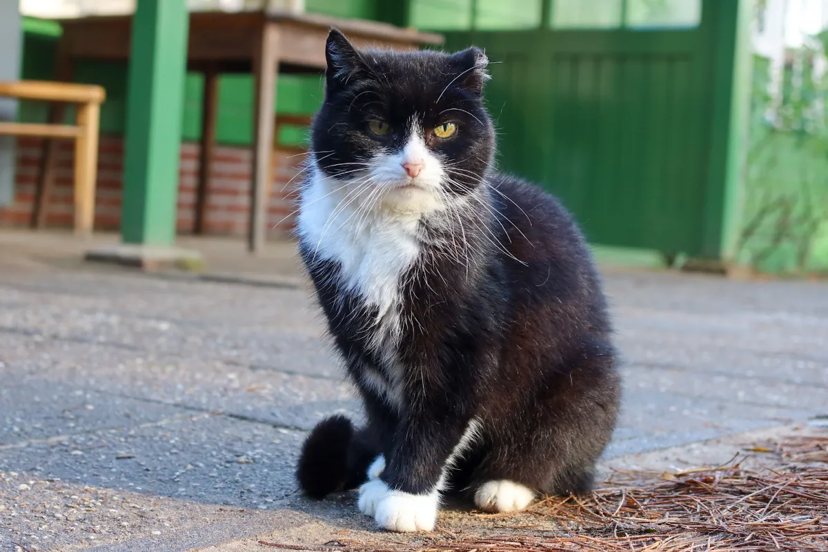 入場してすぐ近くの民家のそばには、かわいい猫が住みついており、人懐っこくはありませんが写真を撮らせてくれます。